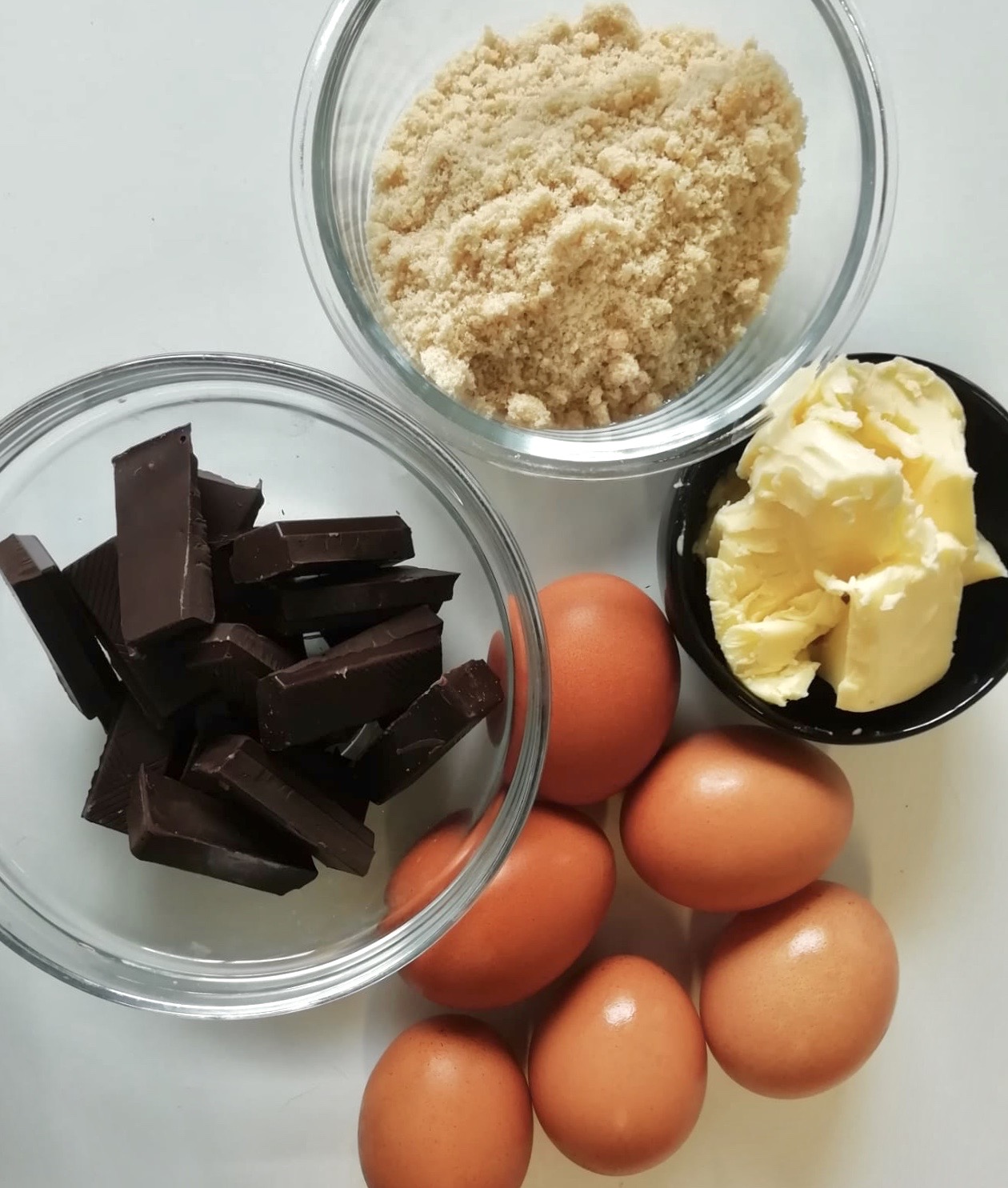 Aquecer a manteiga e o chocolate cerca de um minuto no micro-ondas, retirar e misturar.